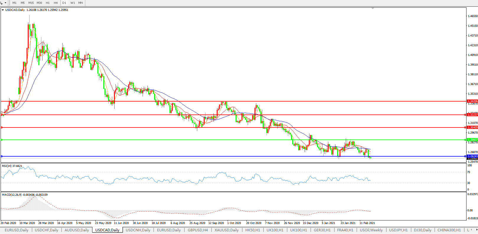 美元兑加元USDCAD    日线图: