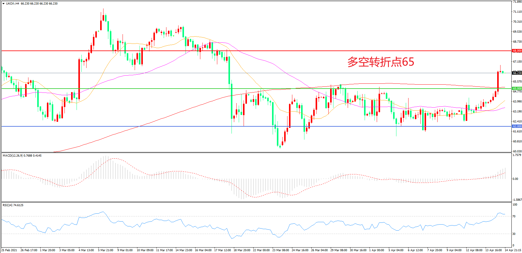 交易策略:在65.00之上看涨,目标68.00 72.00