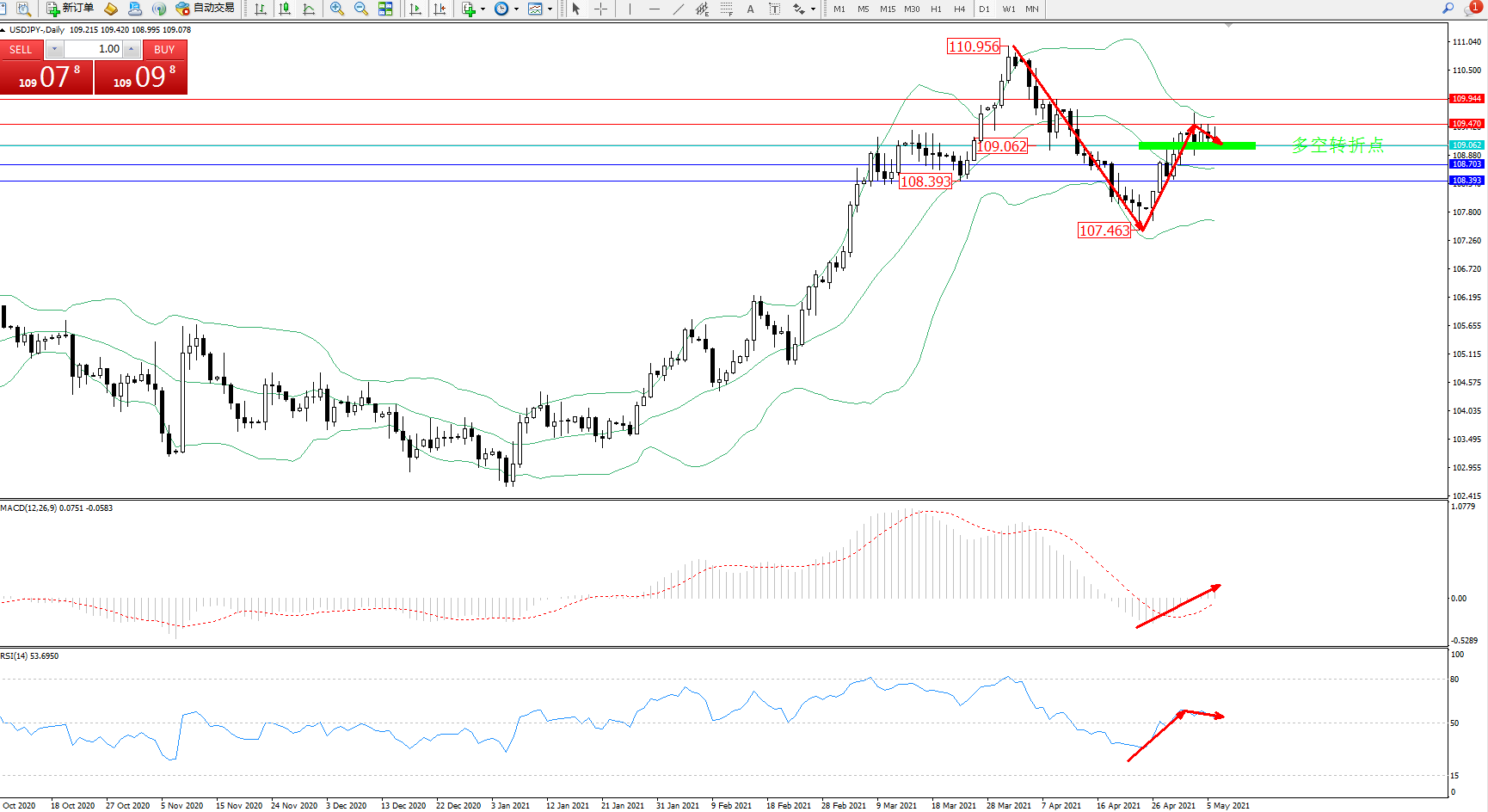 多空转折点:109.062