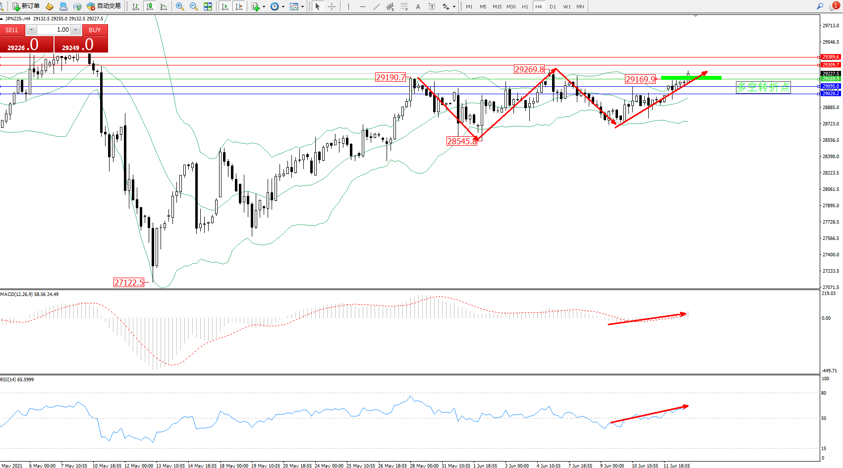 日经指数JPN225——4小时K线图显示: