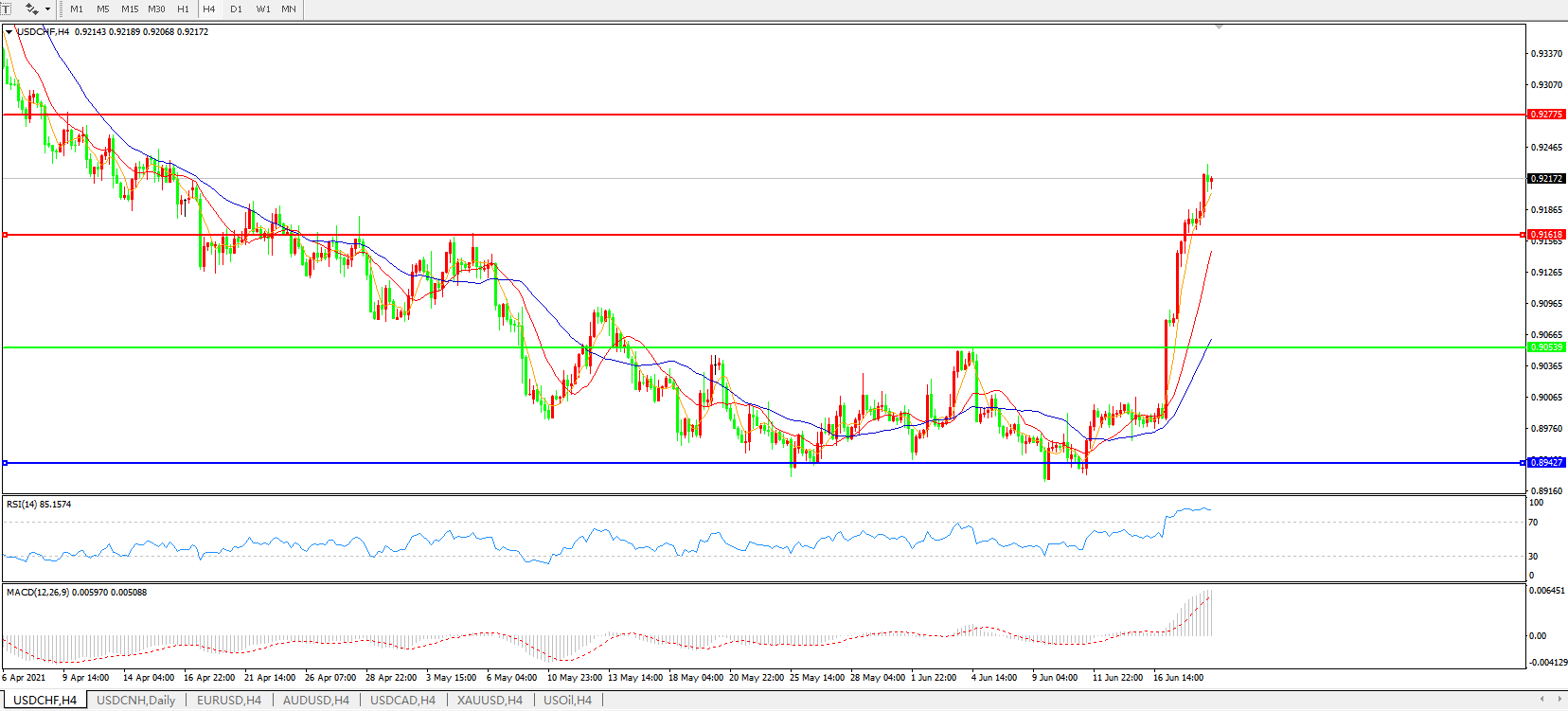 美元兑瑞郎USDCHF    4小时图: