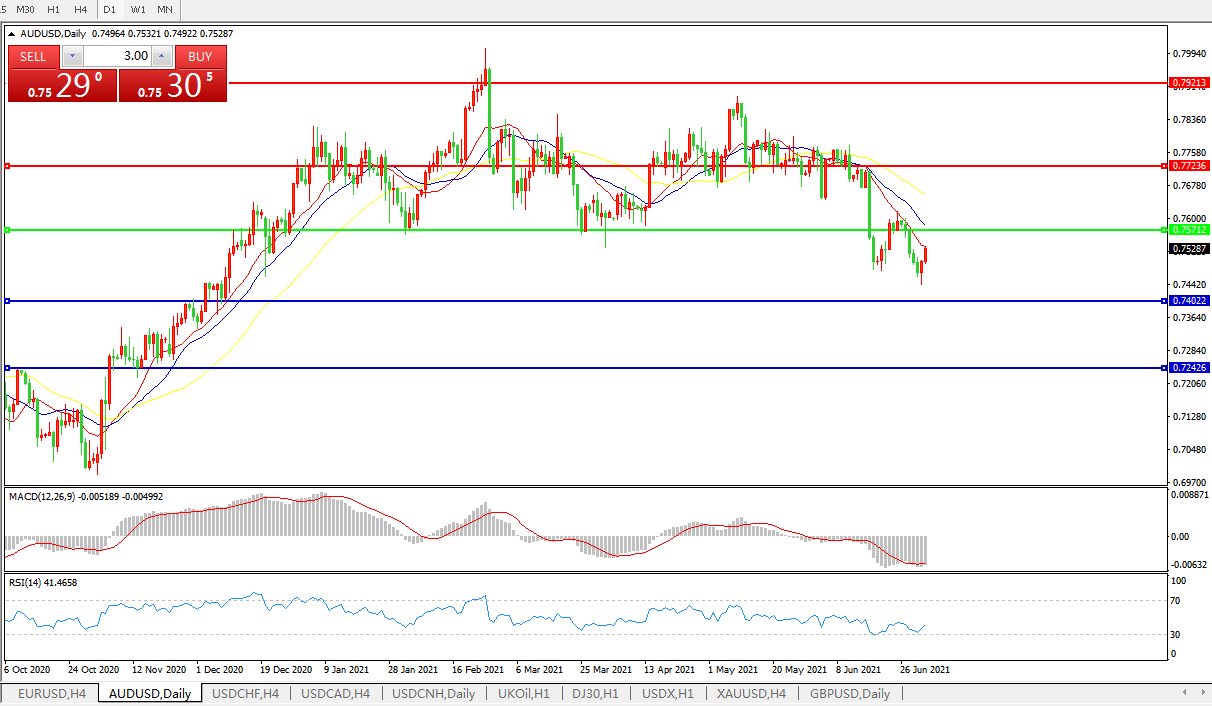 交易策略:0.7570下方看跌,目标0.7400、0.7240