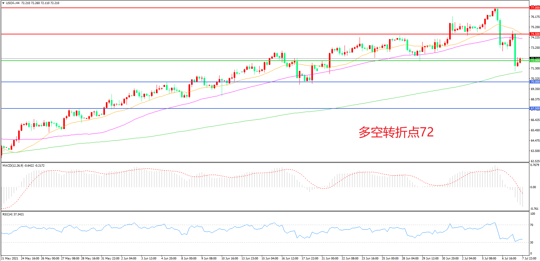 多空转折点:72.00
