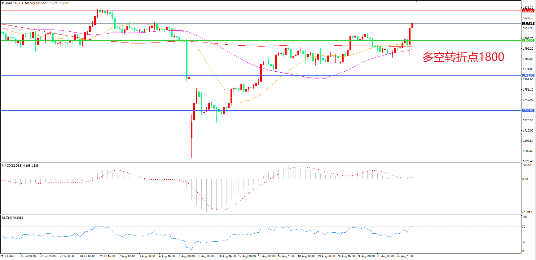 交易策略: 在1800.00之上看涨,目标1830.00 1860.00