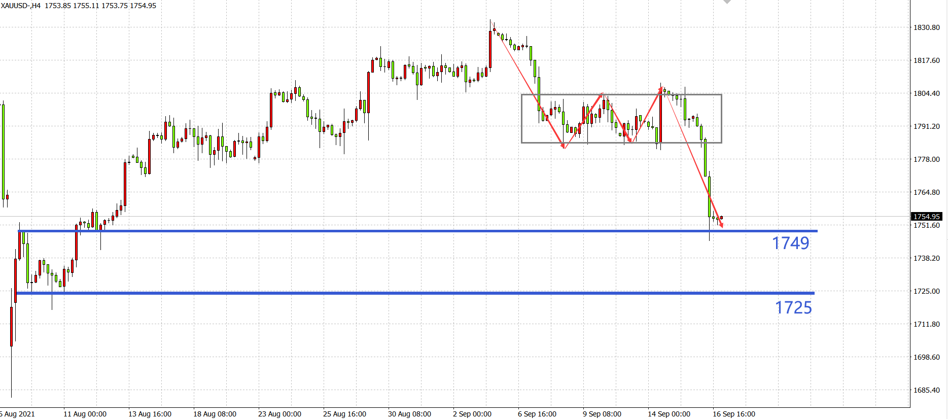 现货黄金XAU/USD   4小时图