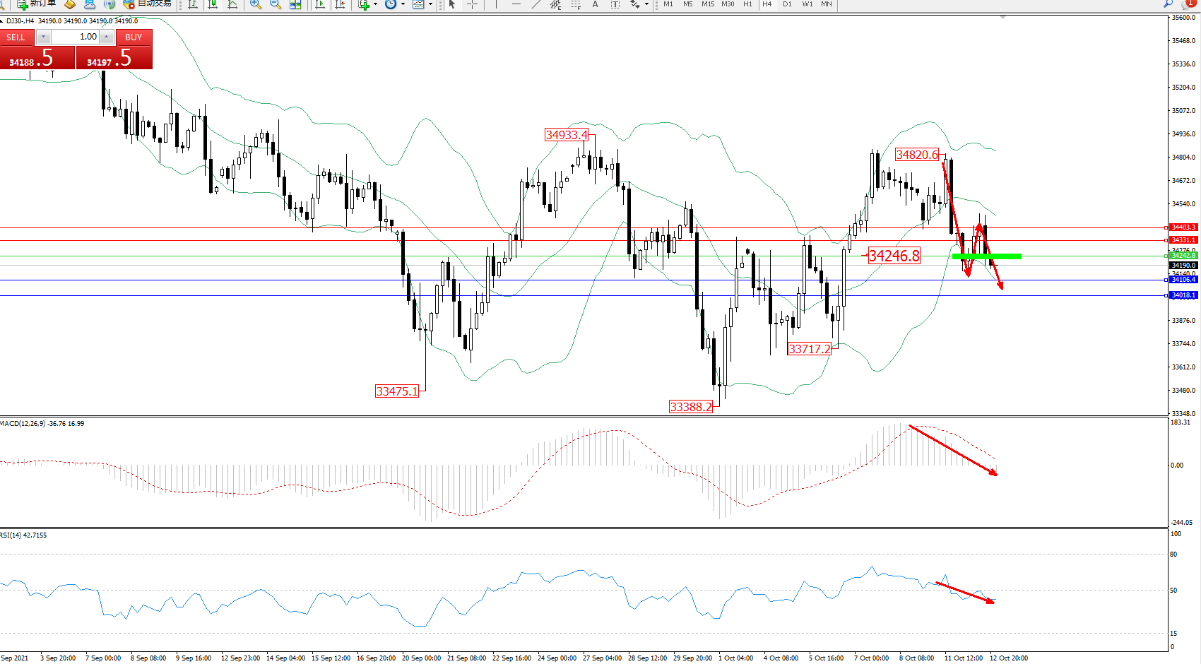 道琼斯指数10月12日(周二)收盘下跌117.52点,跌幅0.34%,报34378.54点;美股尾盘加速下跌,道指初步收跌,美联储布拉德表示支持在11月开始缩债,希望在2022年第一季度完成缩债,以应对更高的通胀,经济虽然经历了德尔塔病毒的挫折,但仍处于良好的状态,美国第三季度经济增长有所下降,但会在此后恢复,到明年春天,失业率可能会回到新冠大流行前的水平,希望将缩债决定和加息时机相互独立,如果需要的话,希望在2022年春季或夏季准备好加息,目前经济衰退的可能性非常低,美国国会制定了包括美联储在内的机构所遵循的道德标准,据我所知,到目前为止我们达到了国会的标准,如果国会提高道德标准,美联储应该遵循,希望美联储有应对通胀的选择。