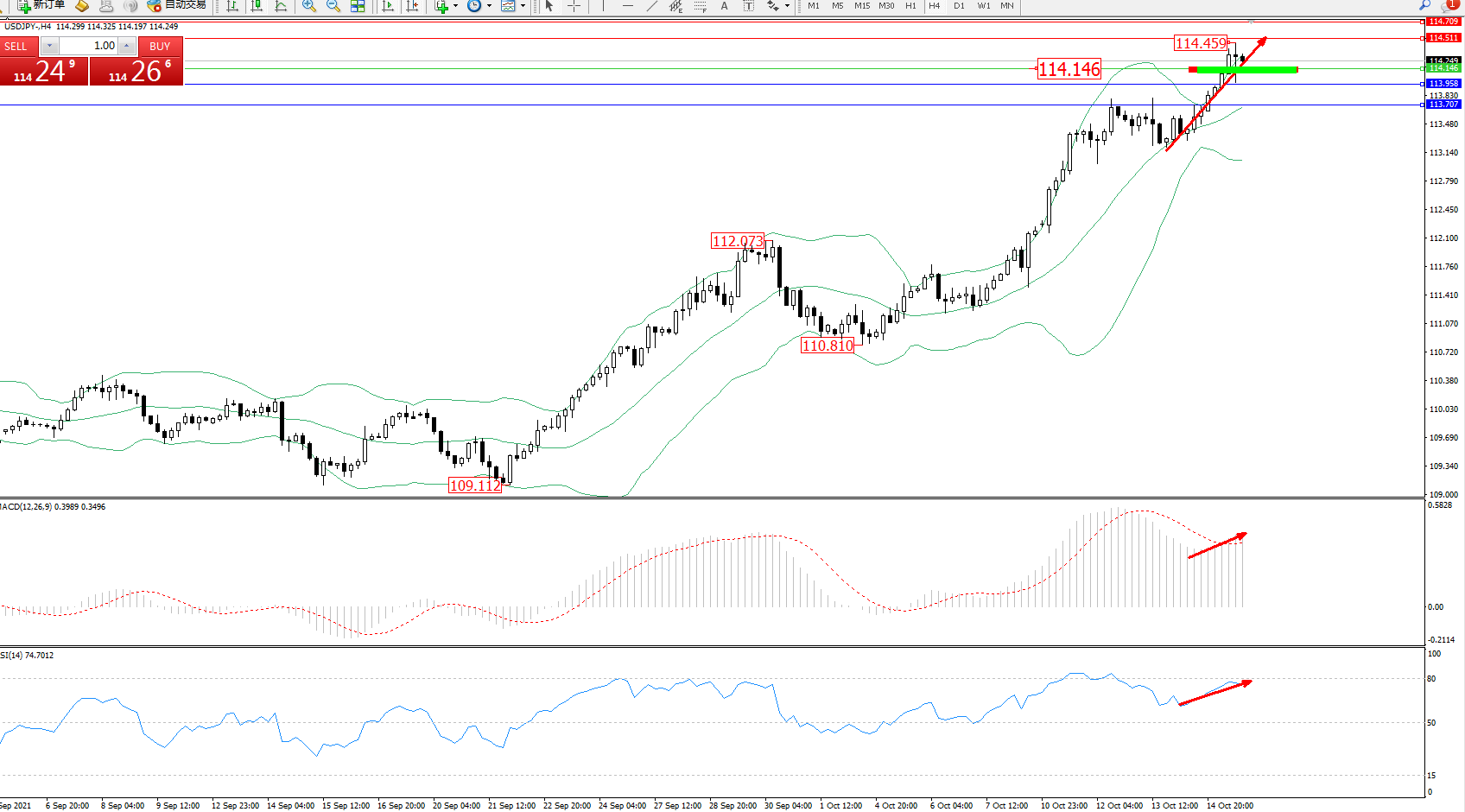 交易策略:114.146上方看涨,目标114.511、114.709