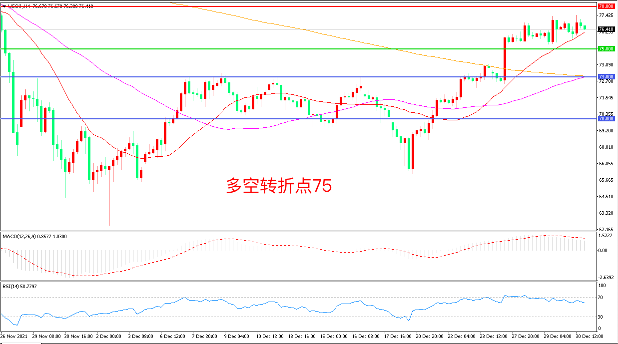 交易策略:在75.00之上看涨,目标78.00        80.00