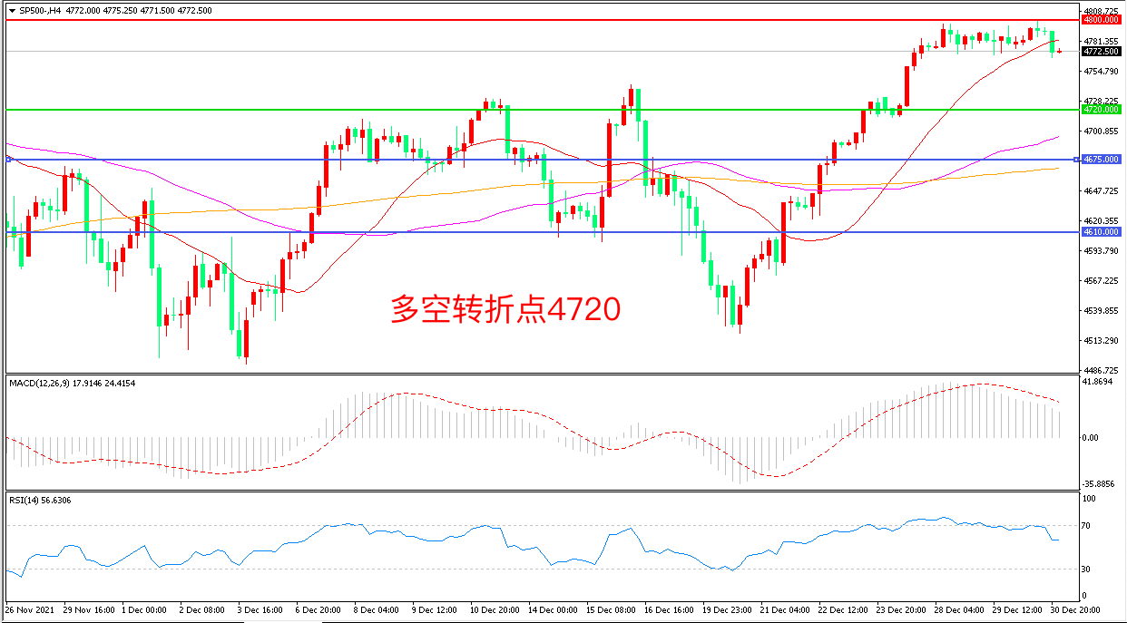 交易策略:在4720.00之上看涨,目标4800.00                           4880.00