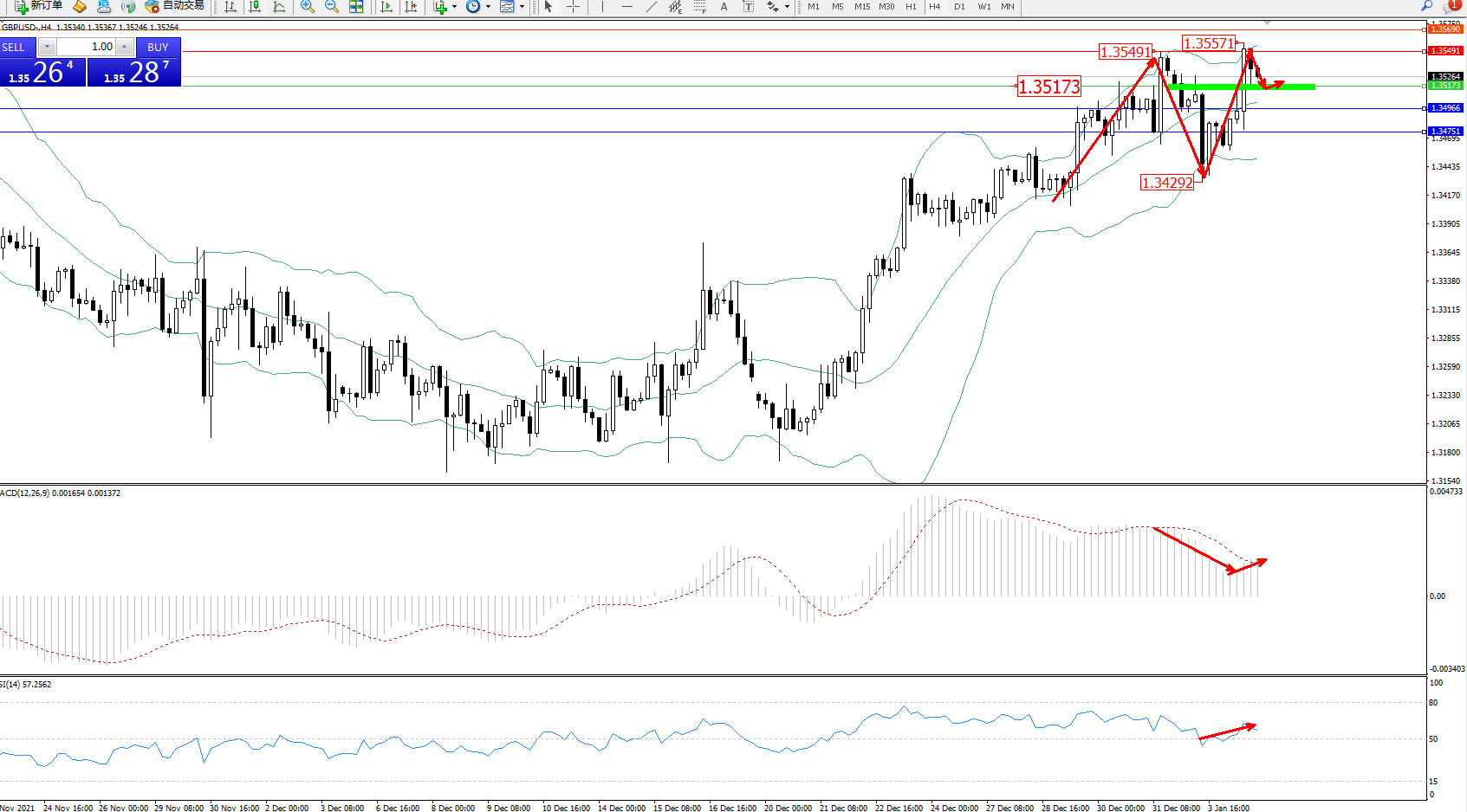 英镑美元GBPUSD ——4小时K线图显示: