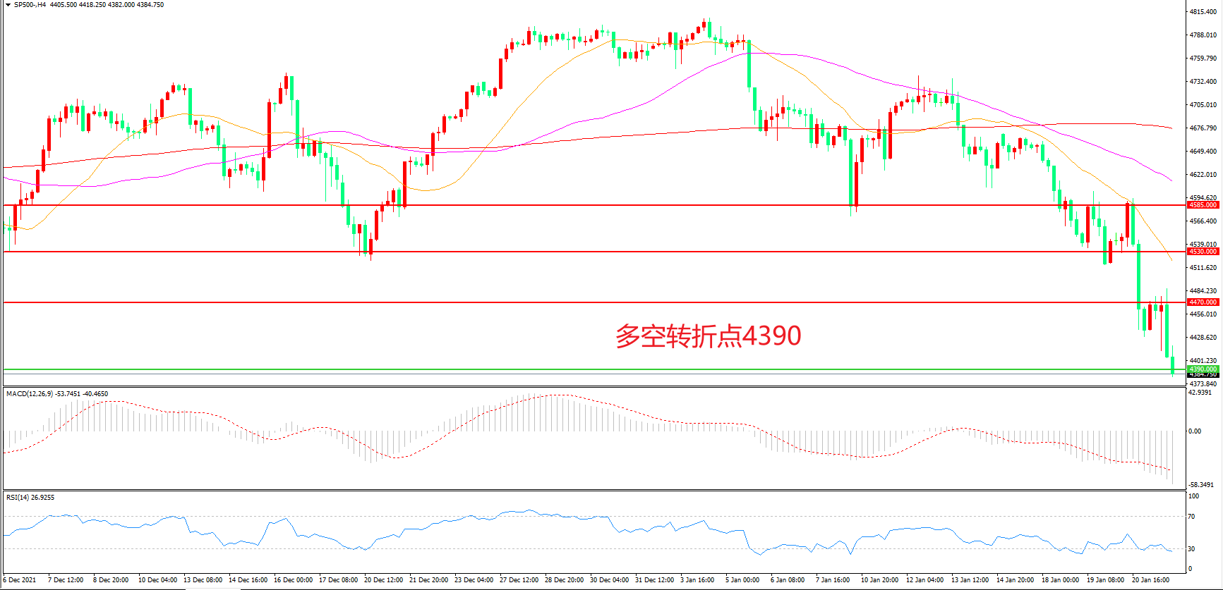 4小时图看,标普500长阴连续下破,短期走势偏空,均线系统拐头向下,MACD绿柱增加,RSI指标走平,日内震荡下行概率较大。