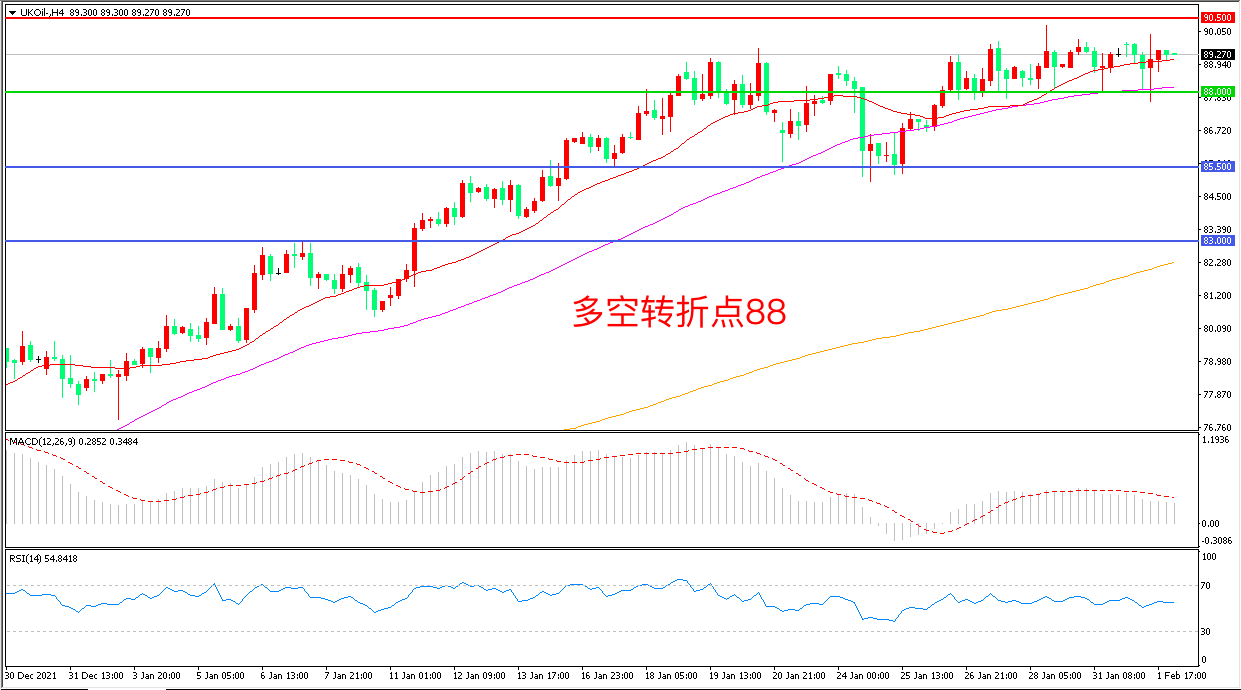 交易策略:在88.00之上看涨,目标90.50                93.00