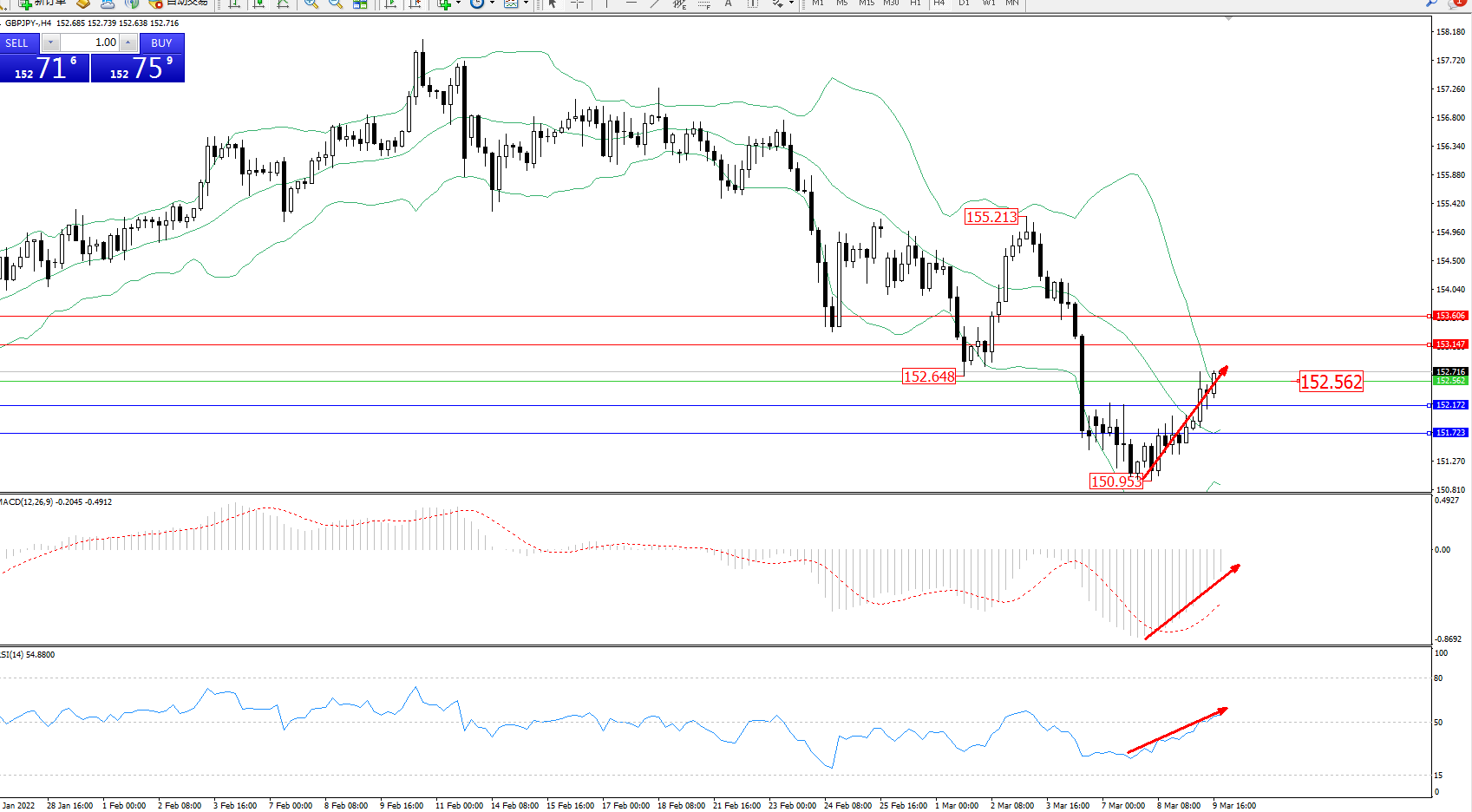 交易策略:152.562上方看涨,目标153.147、153.606
