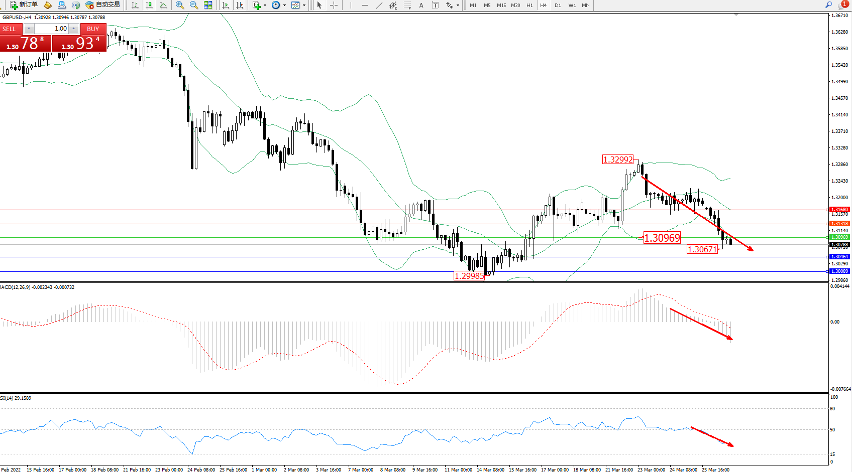 英镑美元GBPUSD ——4小时K线图显示: