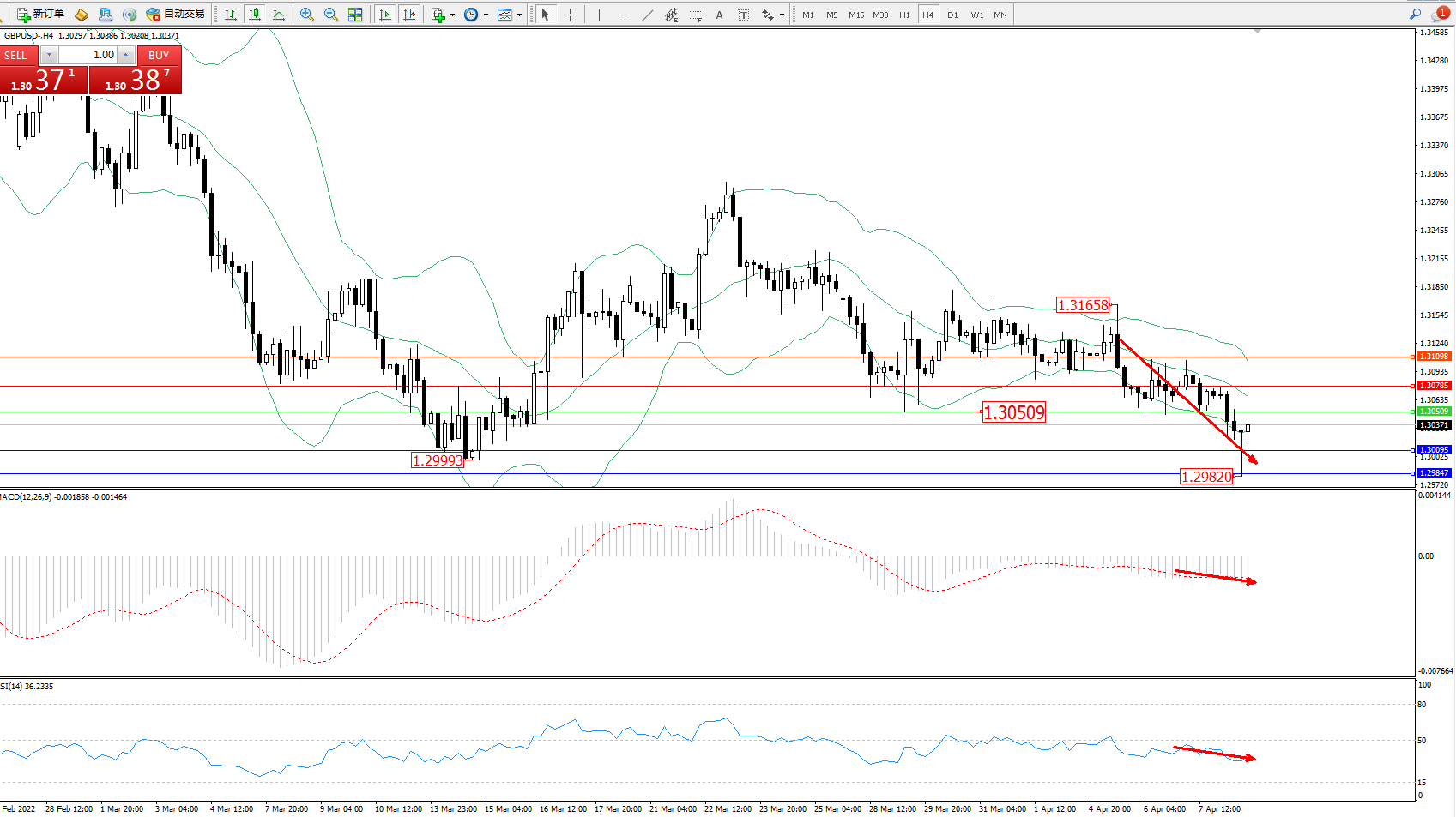 英镑美元GBPUSD ——4小时K线图显示: