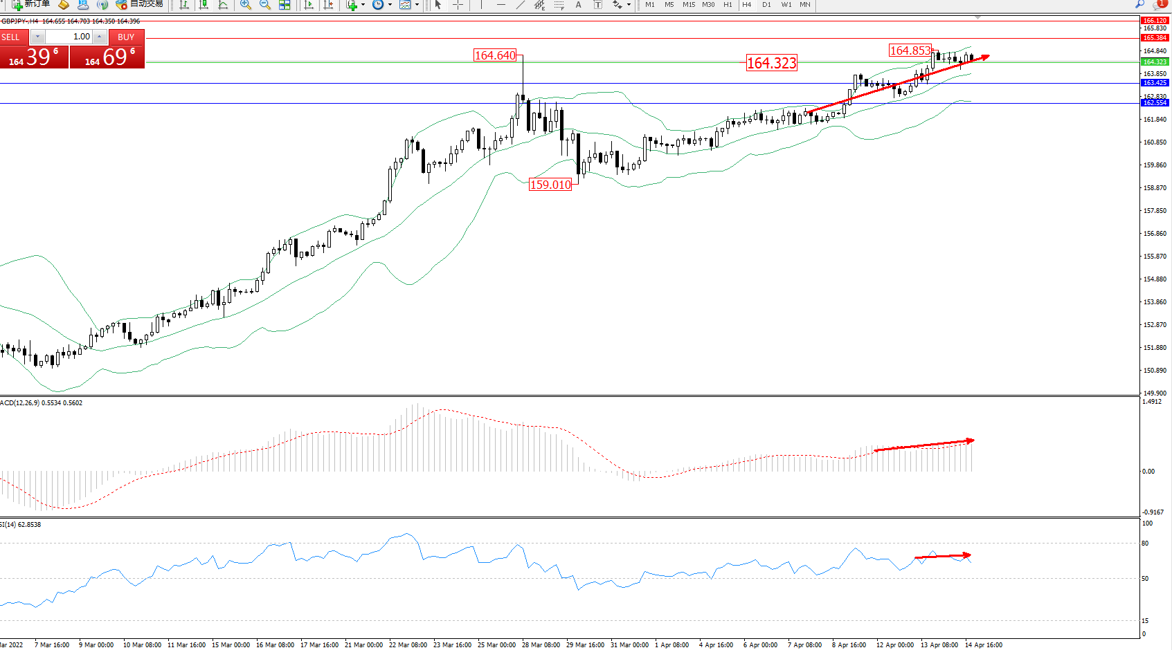技术点评:多头动力延续布林带指标通道中上轨区间持续震荡上扬,高位抵达164.853附近节点后开始整理,短期多头上扬态势良好,且多头动力未见有止步迹象,布林带指标呈上行趋势走势持续中,MACD指标处于多头区域维持震荡向上徘徊,RSI指标处于多头区域维持弱势整理;