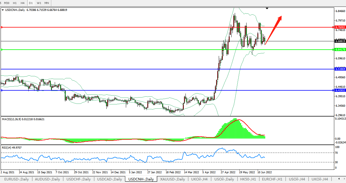 交易策略:在6.6416之上,看涨,目标价位为6.7600、6.8870。