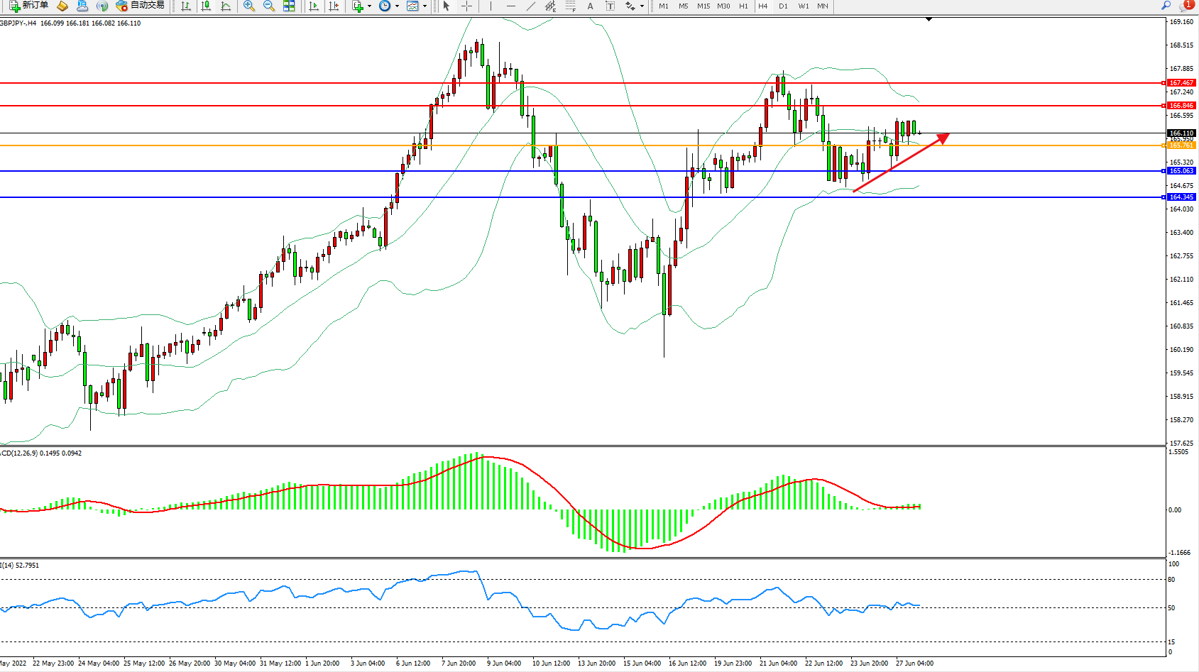 交易策略:166.761上方看涨,目标166.846、167.467