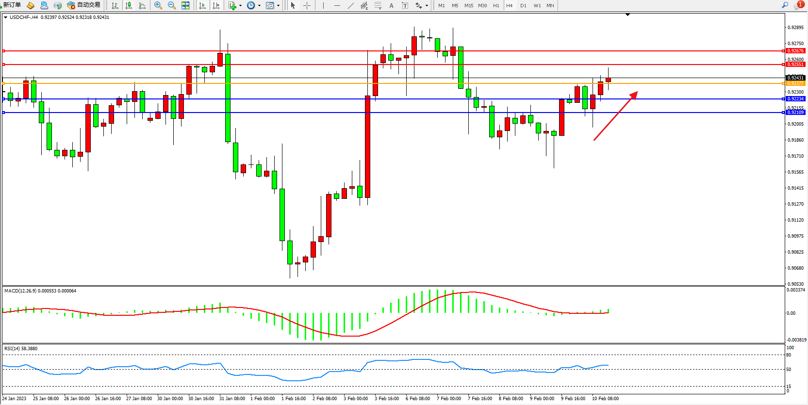 美元瑞郎USDCHF——4小时K线图显示: