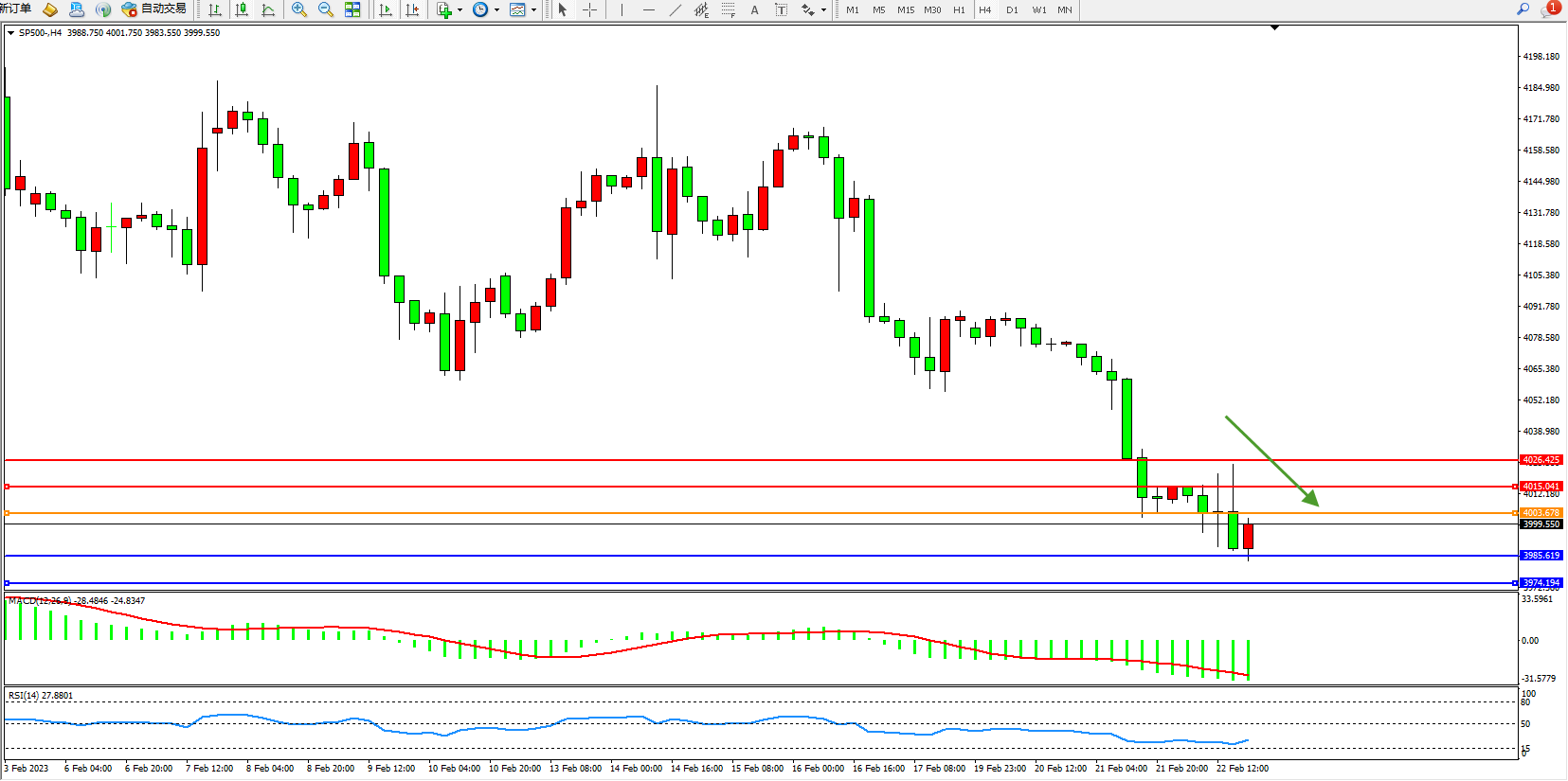 标普SP500——4小时K线图显示: