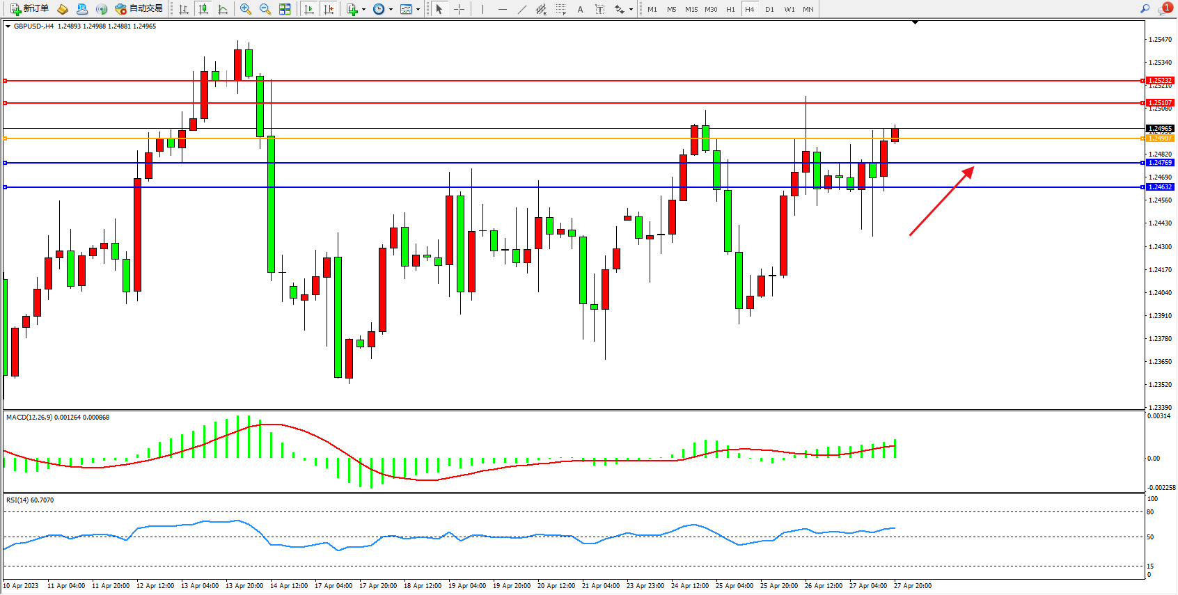 英镑美元GBPUSD ——4小时K线图显示: