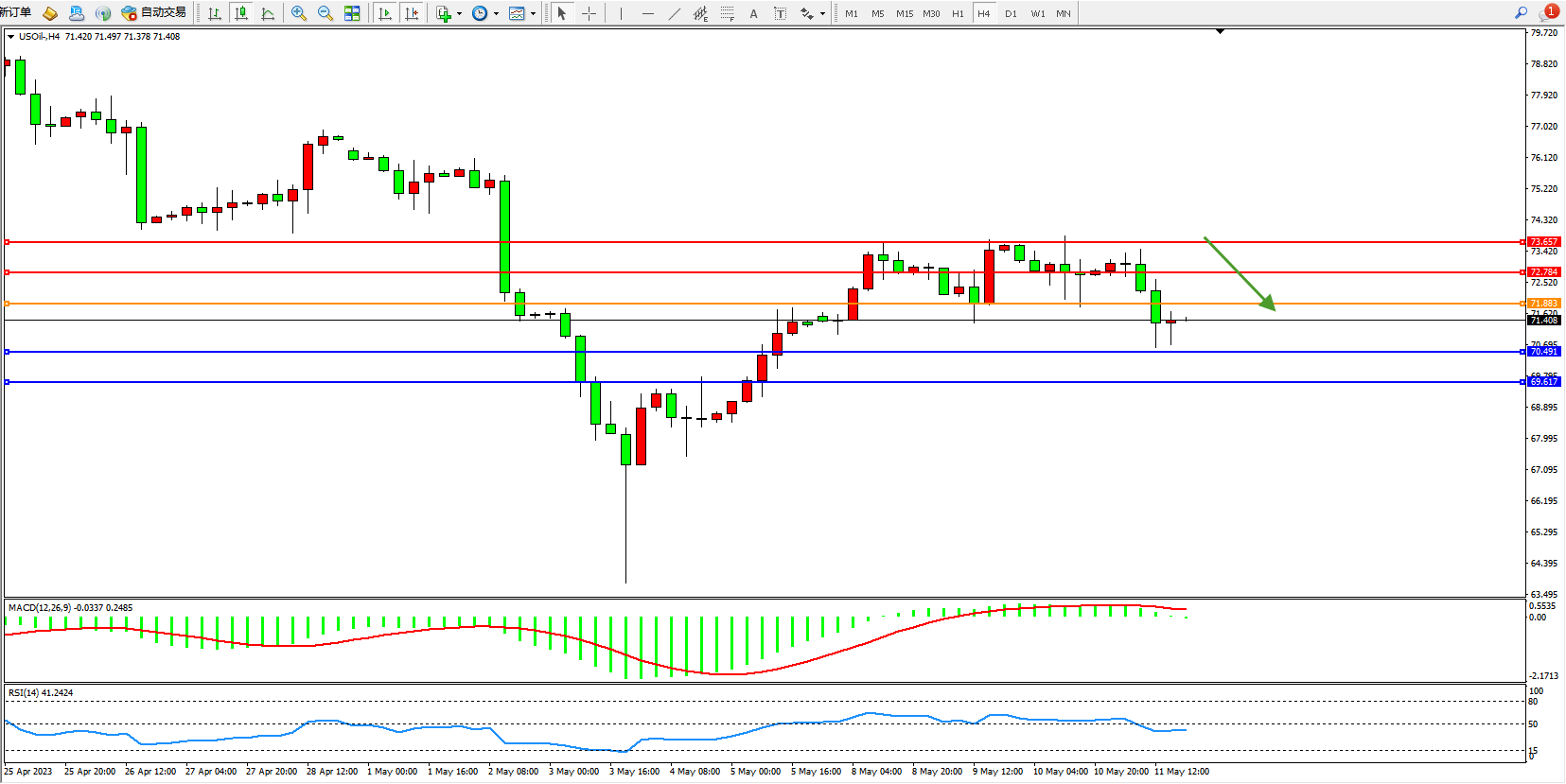 交易策略:71.883下方看跌,目标70.491 69.617