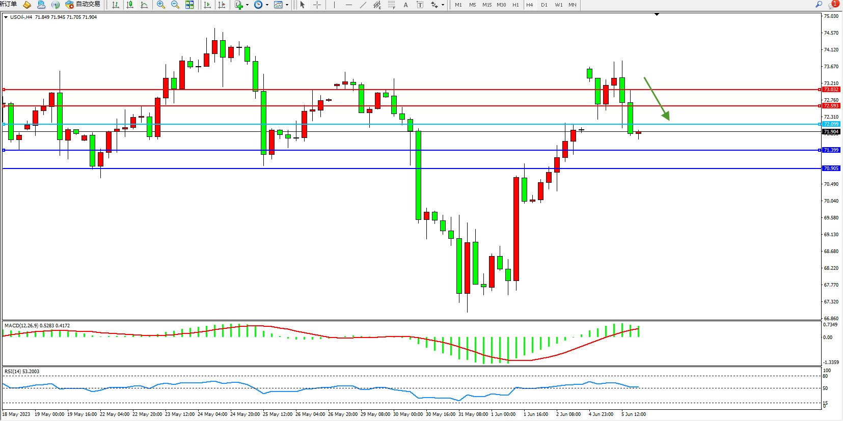 原油USOil——4小时K线图显示: