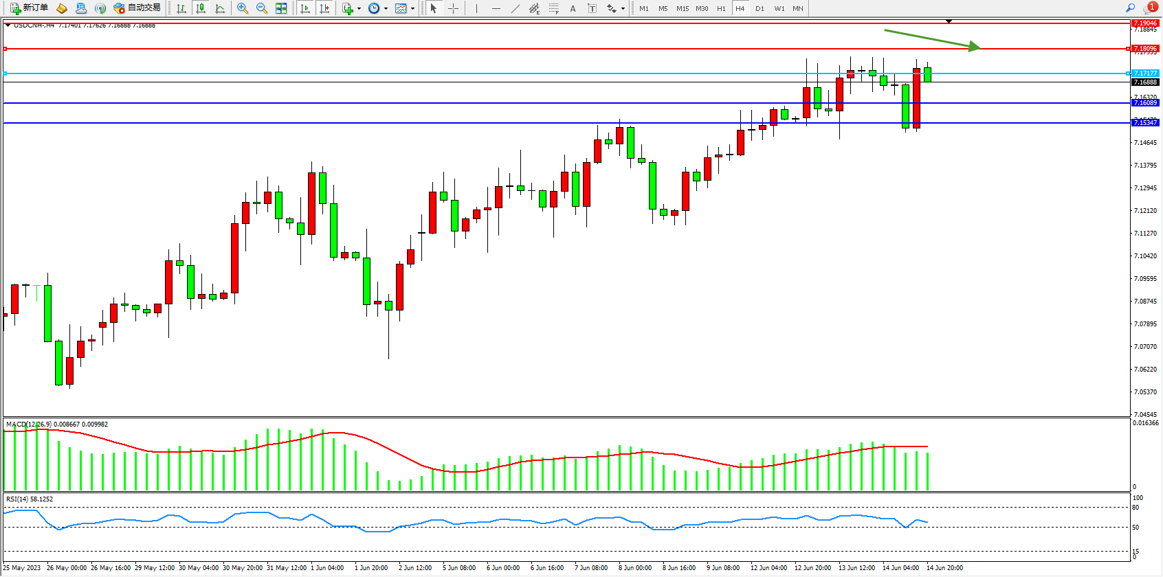 交易策略:7.17177下方看跌,目标7.16089 7.15347