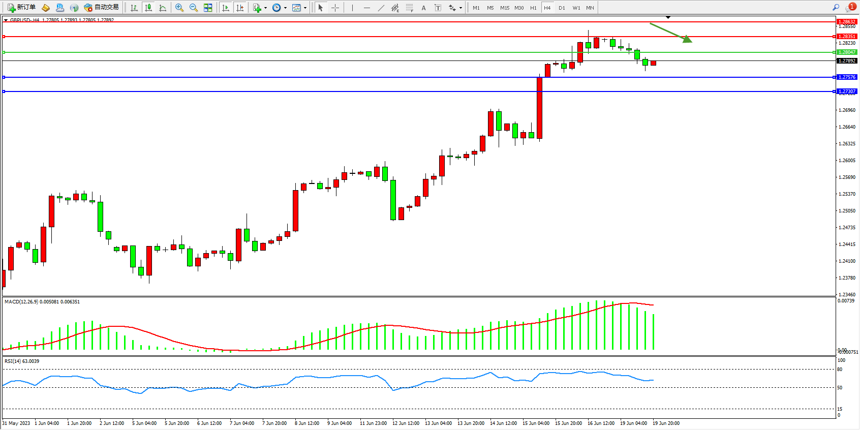 英镑美元GBPUSD ——4小时K线图显示: