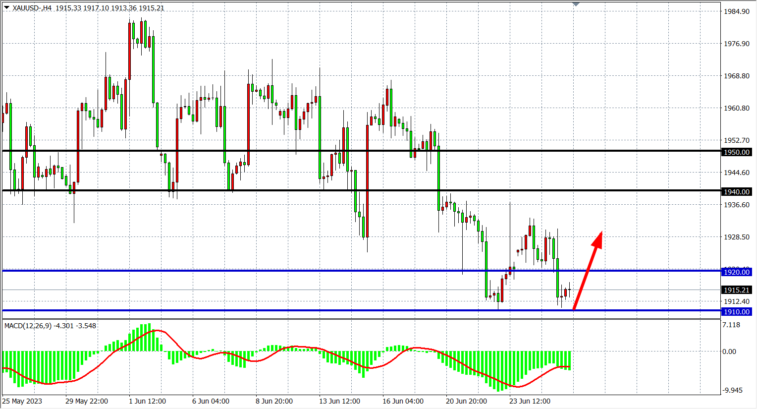 现货黄金XAUUSD 四小时图