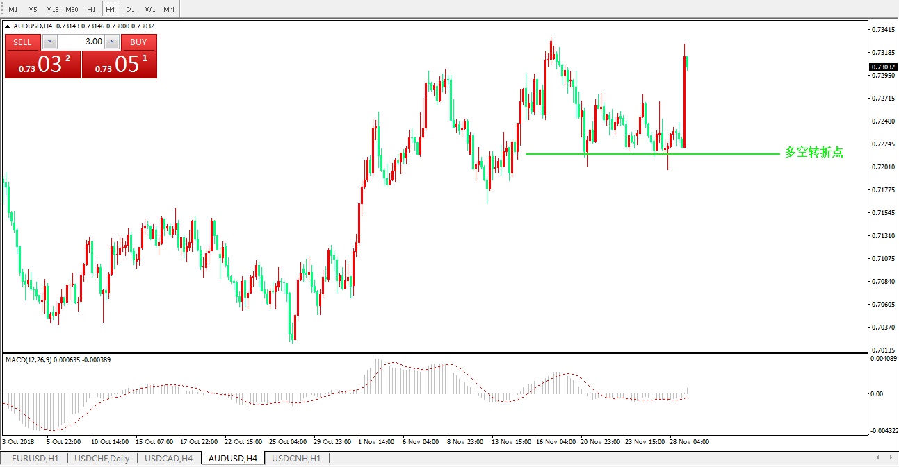 澳元兑美元AUDUSD4小时图: