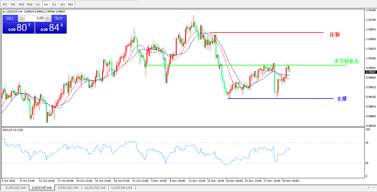 美元兑瑞郎USDCHF4小时图