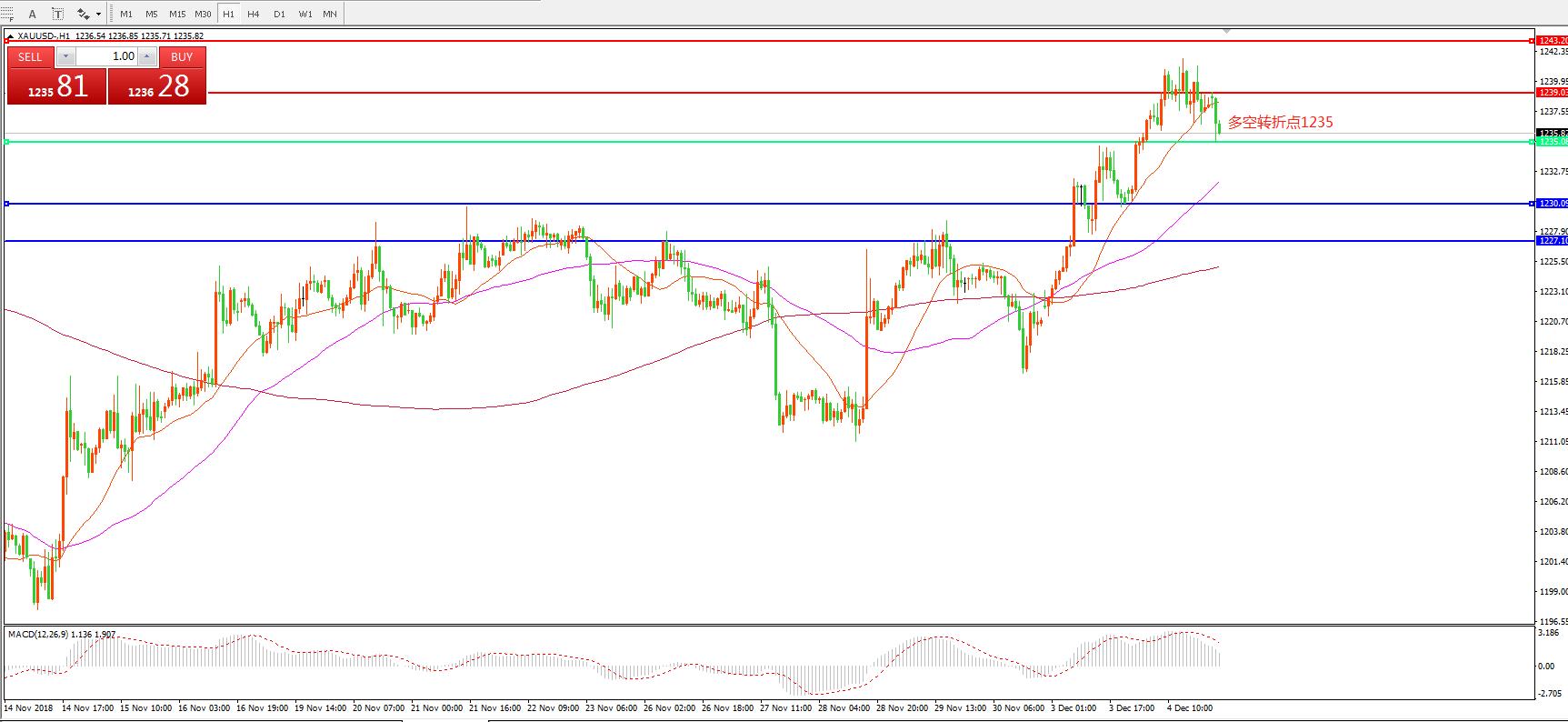 交易策略:在1235.00之上看涨,目标1239.00  1243.20