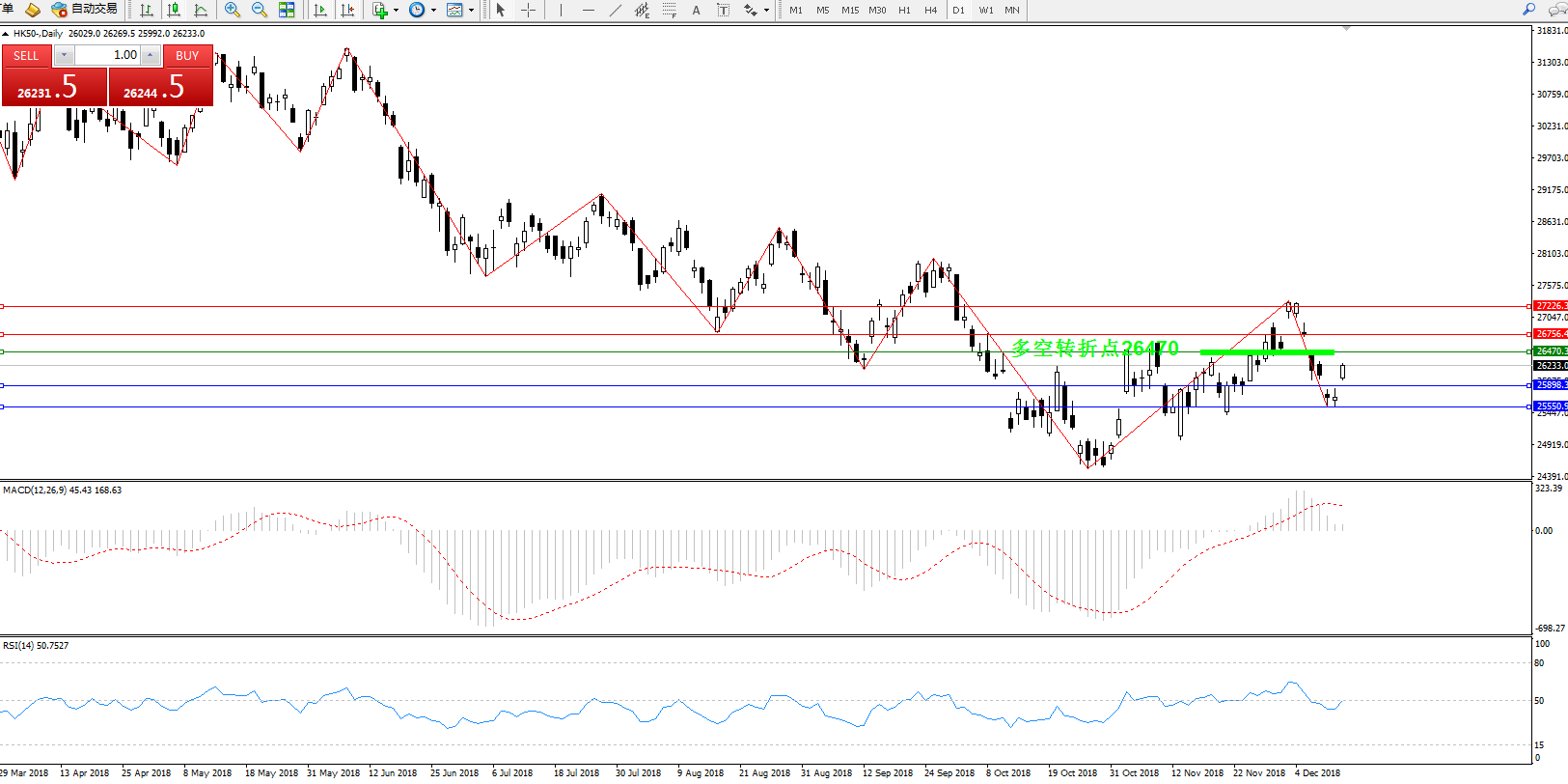 恒指HK50 ——日K线图显示: