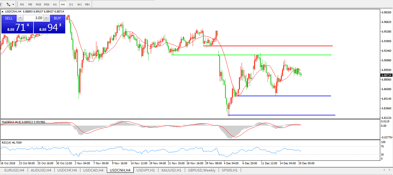 备选策略: 在6.9200之上,看涨,目标价位为6.9300,然后为6.9557。