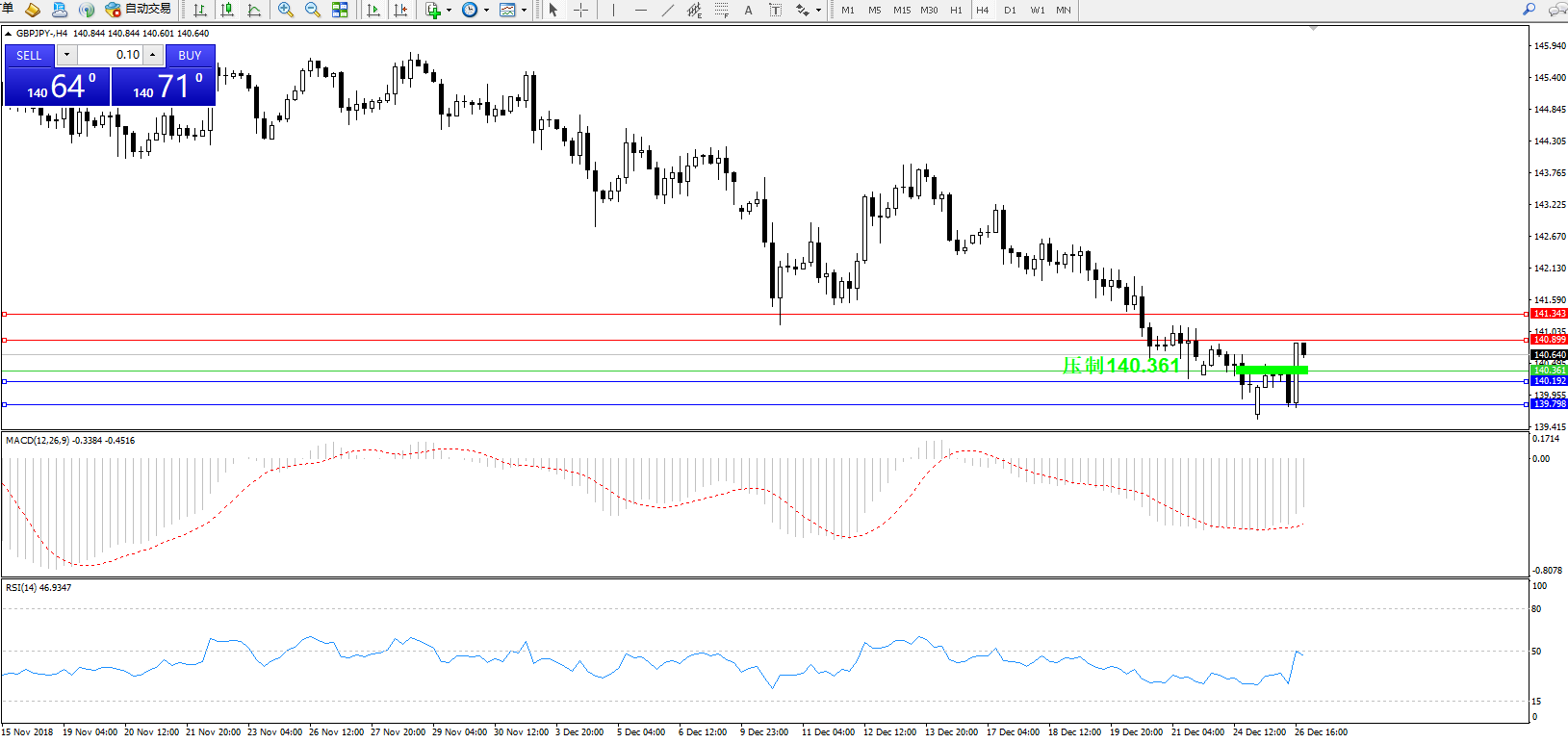 交易策略:140.361上方看涨,目标140.899、141.343
