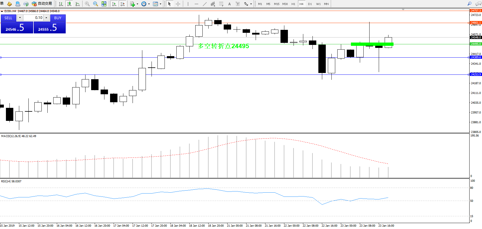 交易策略:24495上方看涨,目标24661、24757