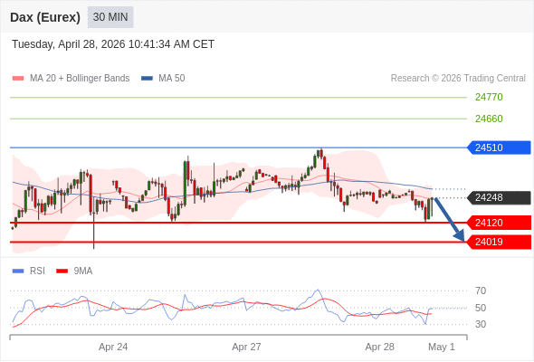 在 24510 之下,看跌,目标价位为 24120 ,然后为 24019 。