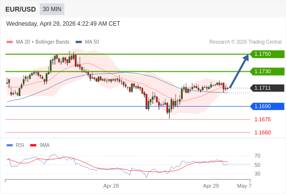 在 1.1690 之上,看涨,目标价位为 1.1730 ,然后为 1.1750 。