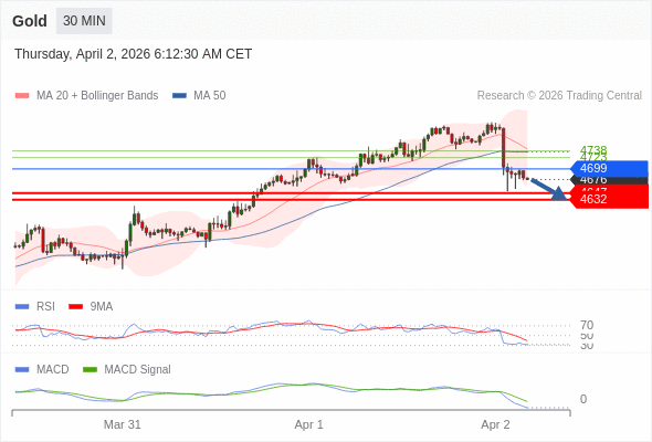 Gold 当日内: 看跌,在 4699 之下。