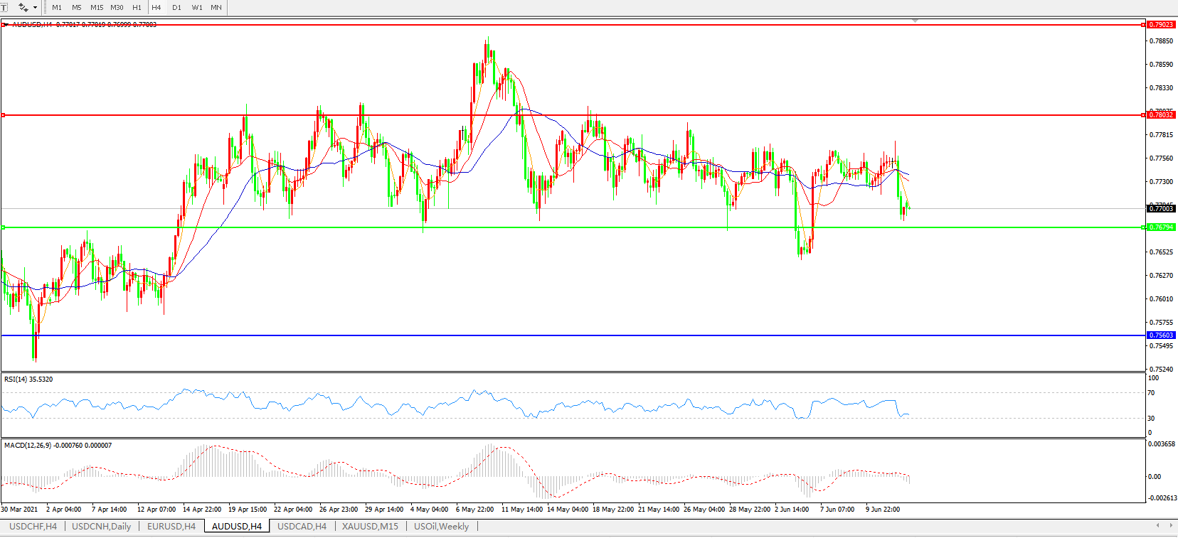 AUDUSD 4小时图: