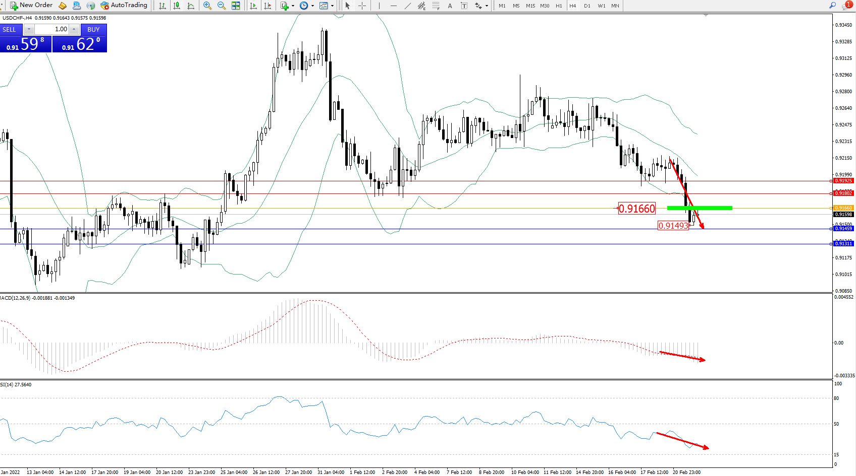 美元瑞郎USDCHF——4小时K线图显示: