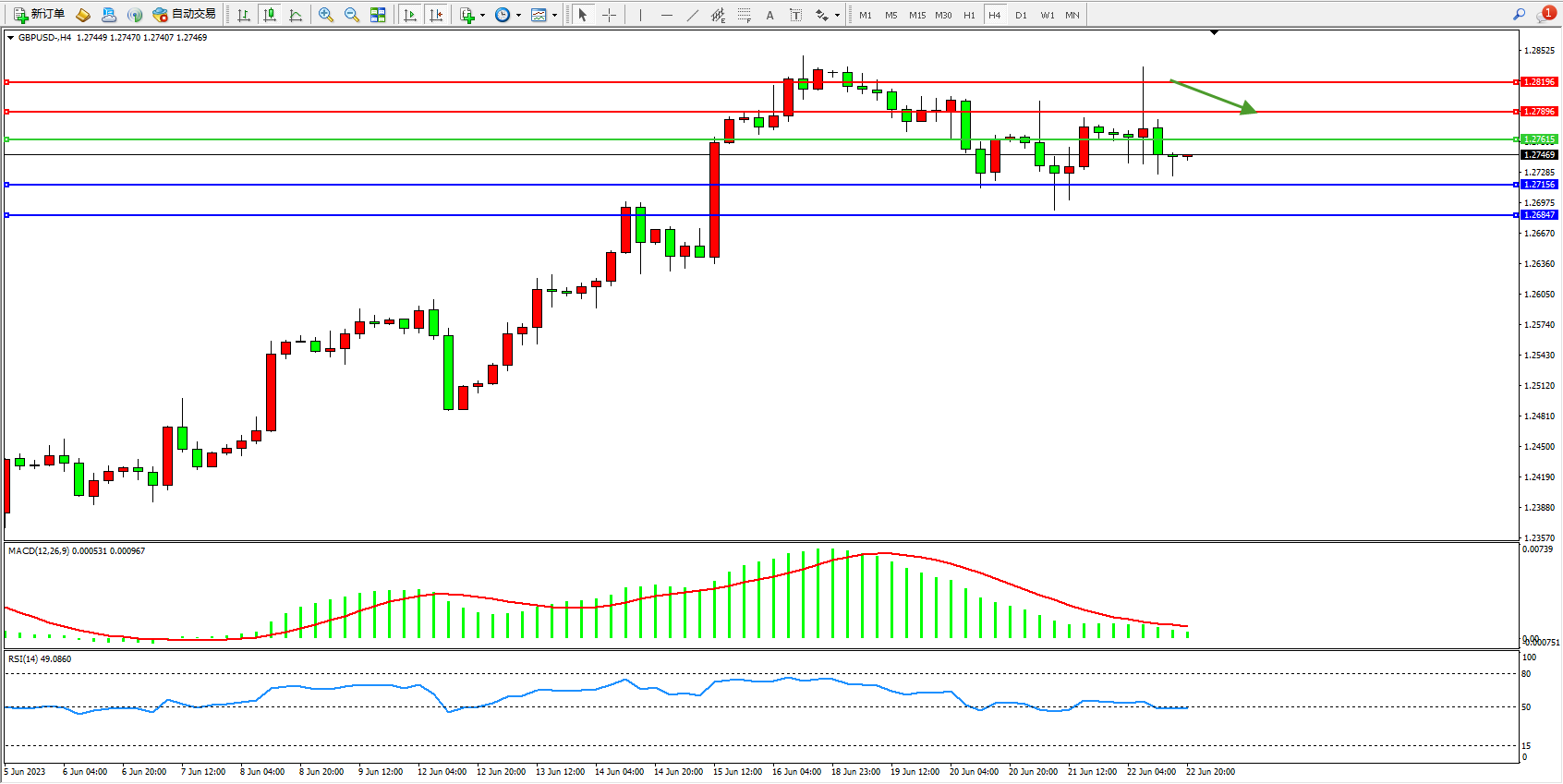 交易策略:1.27615下方看跌,目标1.27156 1.26847