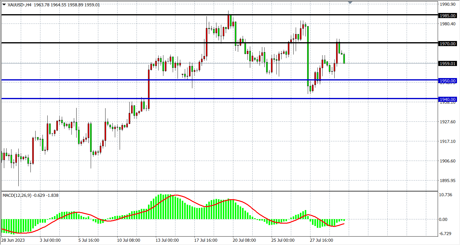 现货黄金XAUUS四小时图